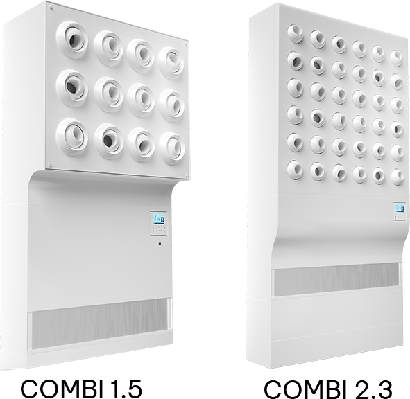 Die COMBI-Serie von Medic Clean Air zeichnet sich vor allem durch die einfache Installation und den minimalen Platzbedarf aus. Sie kann in den meisten – auch kleinen – Räumlichkeiten einfach nachträglich installiert werden, ohne dabei viel Platz innerhalb des Raumes zu verbrauchen. Gerade in kleinen Räumlichkeiten kann dies von entscheidender Bedeutung sein. Je nach Raumgröße kann schon eine COMBI1.5 oder 2.3 ausreichen, um die Raumluftklasse 1b zu erreichen.